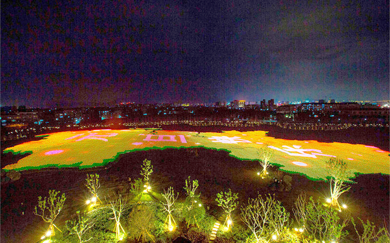 綠化部分包括喬木、灌木、地被、種植土回填及地形整理等;亮化部分包括管線預(yù)埋、燈具安裝,主要亮點為設(shè)置花燈呈現(xiàn)花海燈光秀,配合綠化堆坡造型,整體呈現(xiàn)壯觀、絢麗的燈光盛宴。